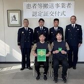 患者等搬送乗務員基礎講習を受講した「ジニーズランプ株式会社」様に、患者等搬送事業者認定証を交付しました。 開催日時 令和8年1月26日(月曜日) 14時0...